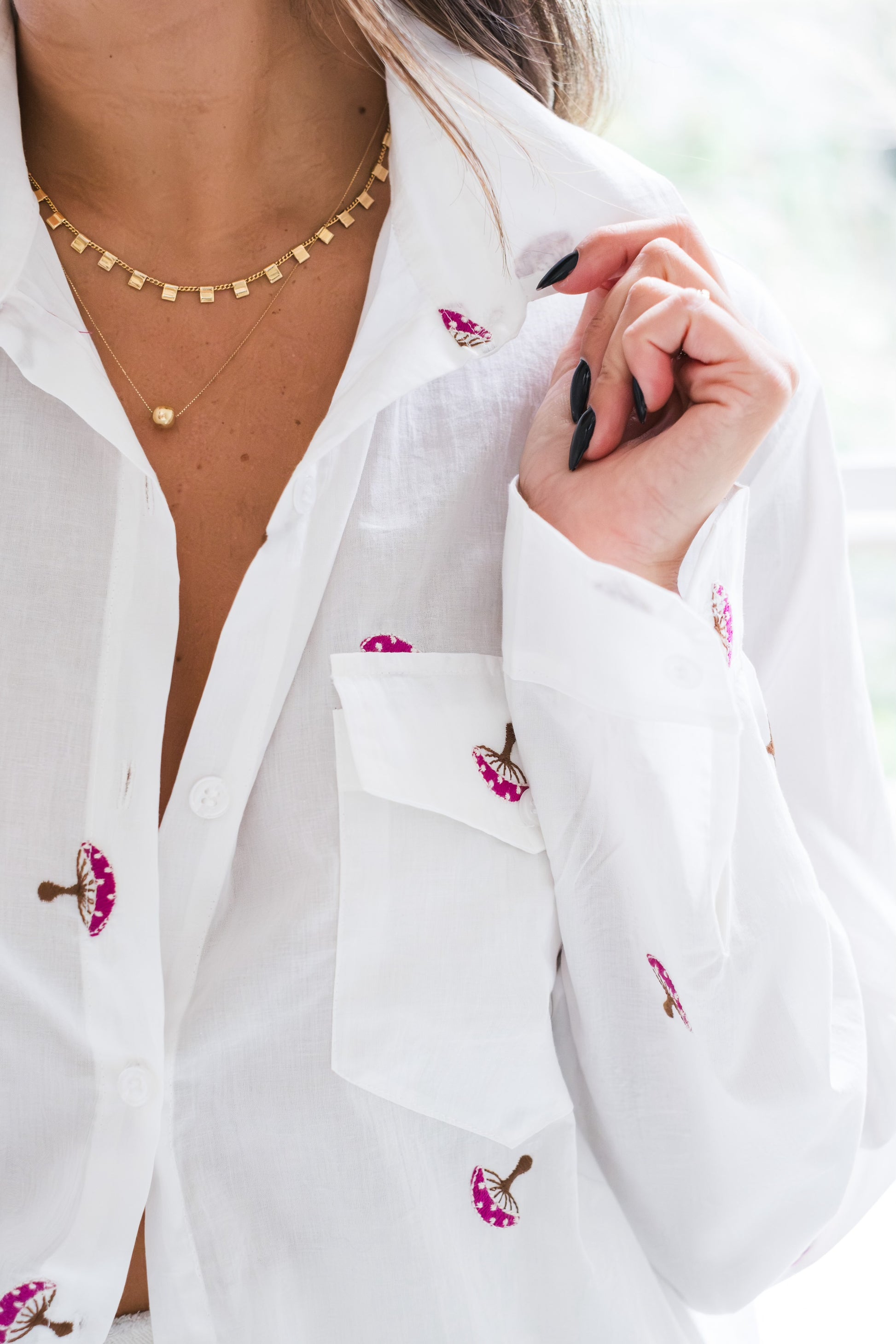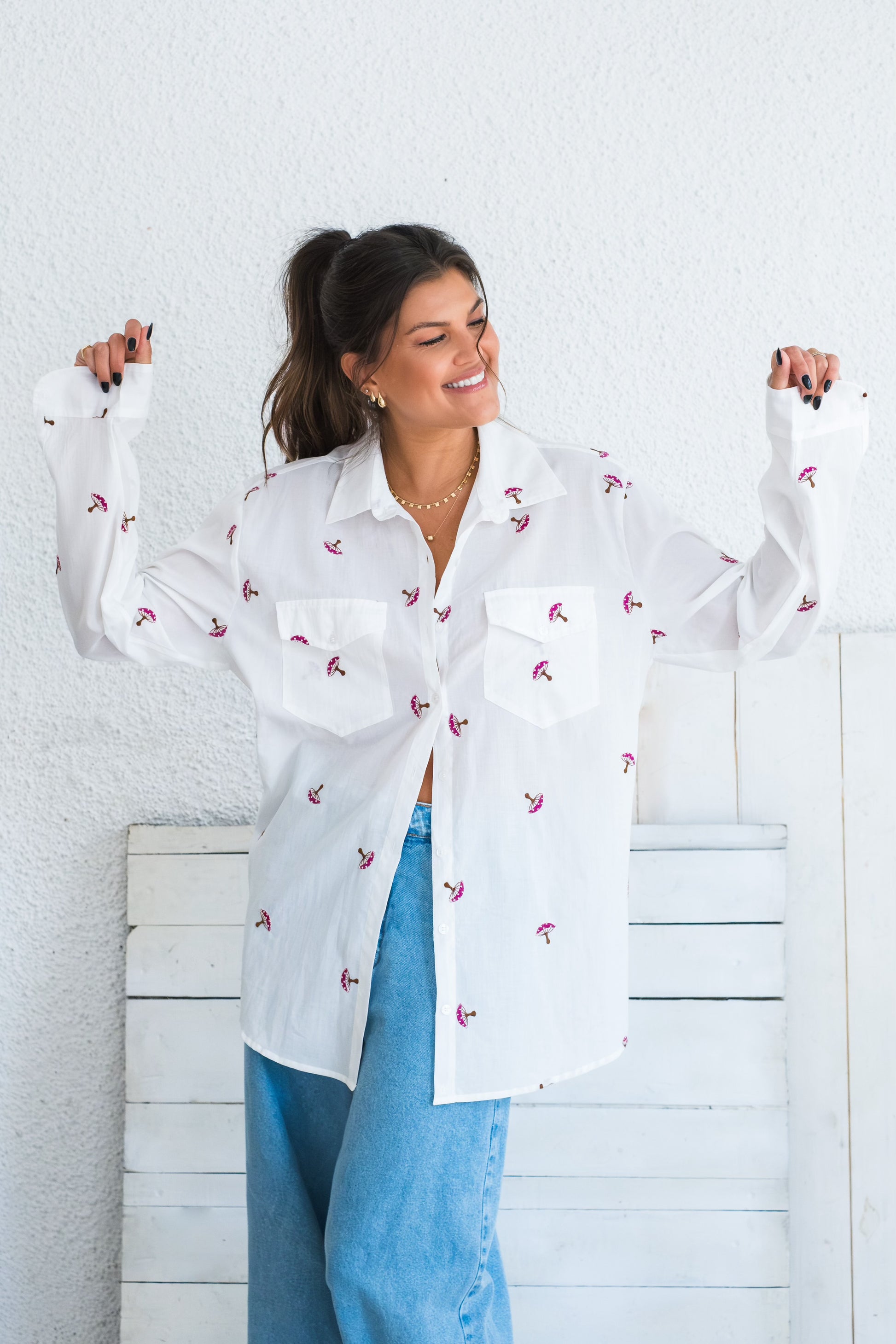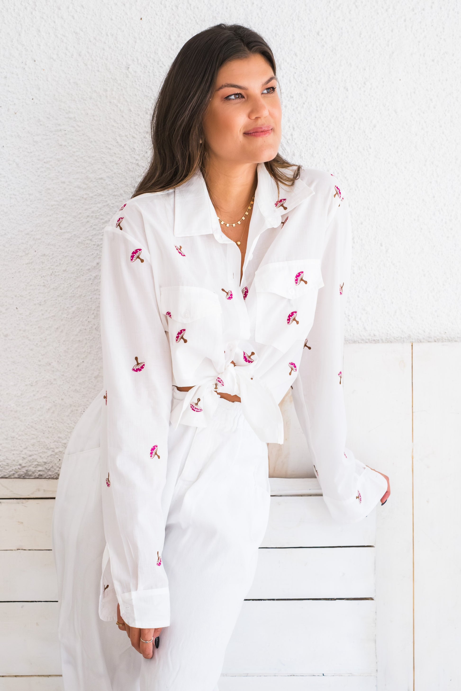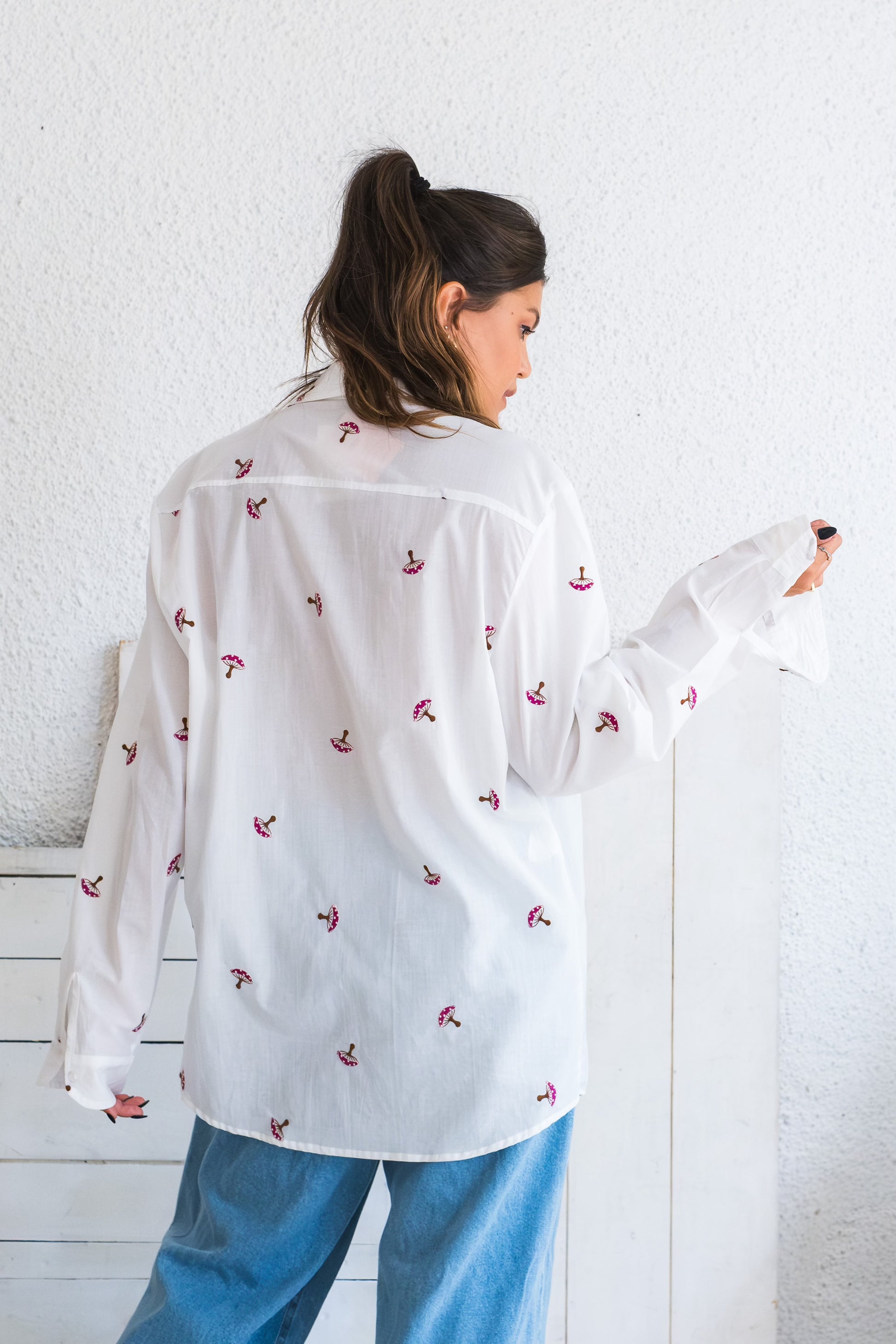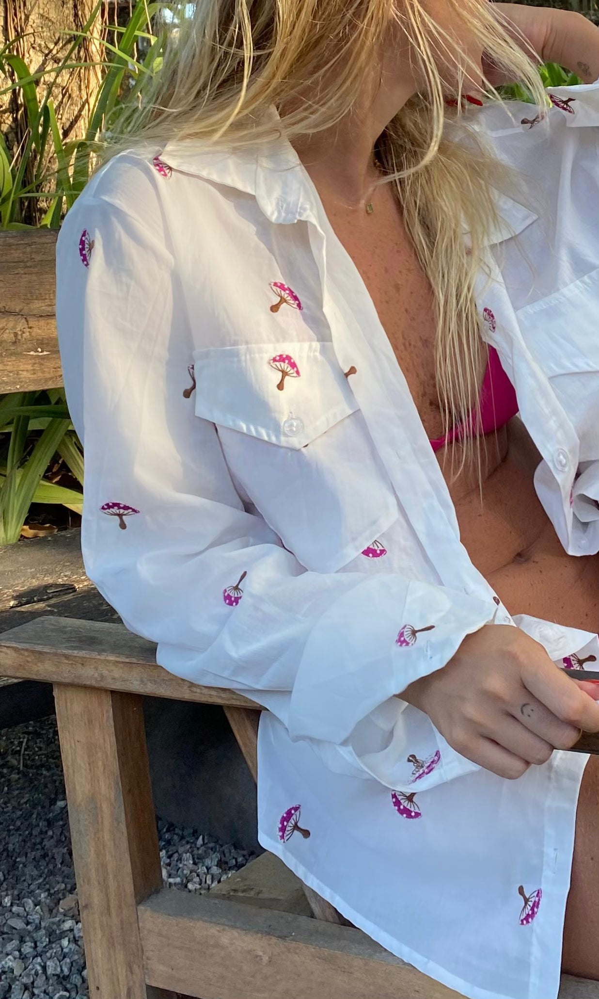 🍄 A camisa mais amada do ultimo verão está de volta! Mas dessa vez, os cogumelos estão no tom fúcsia. Como não amar?!