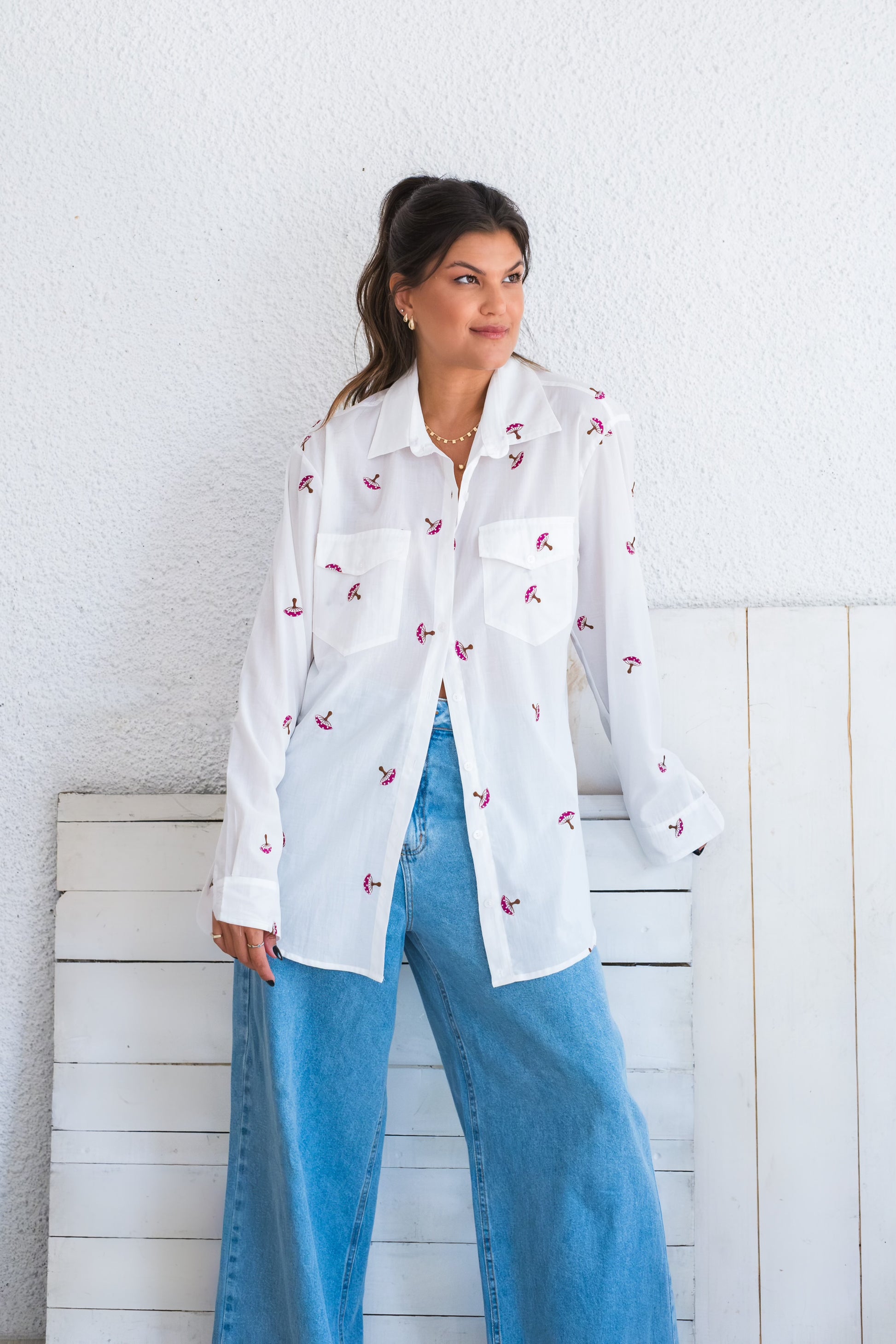 Na modelagem oversized, é perfeita para muitos momentos: durante o dia, oferece frescor e conforto, ideal para passeios na rua ou na praia. À noite, sua elegância natural se adapta a eventos casuais, e até mesmo formais, se usada com bastante estilo e criatividade.