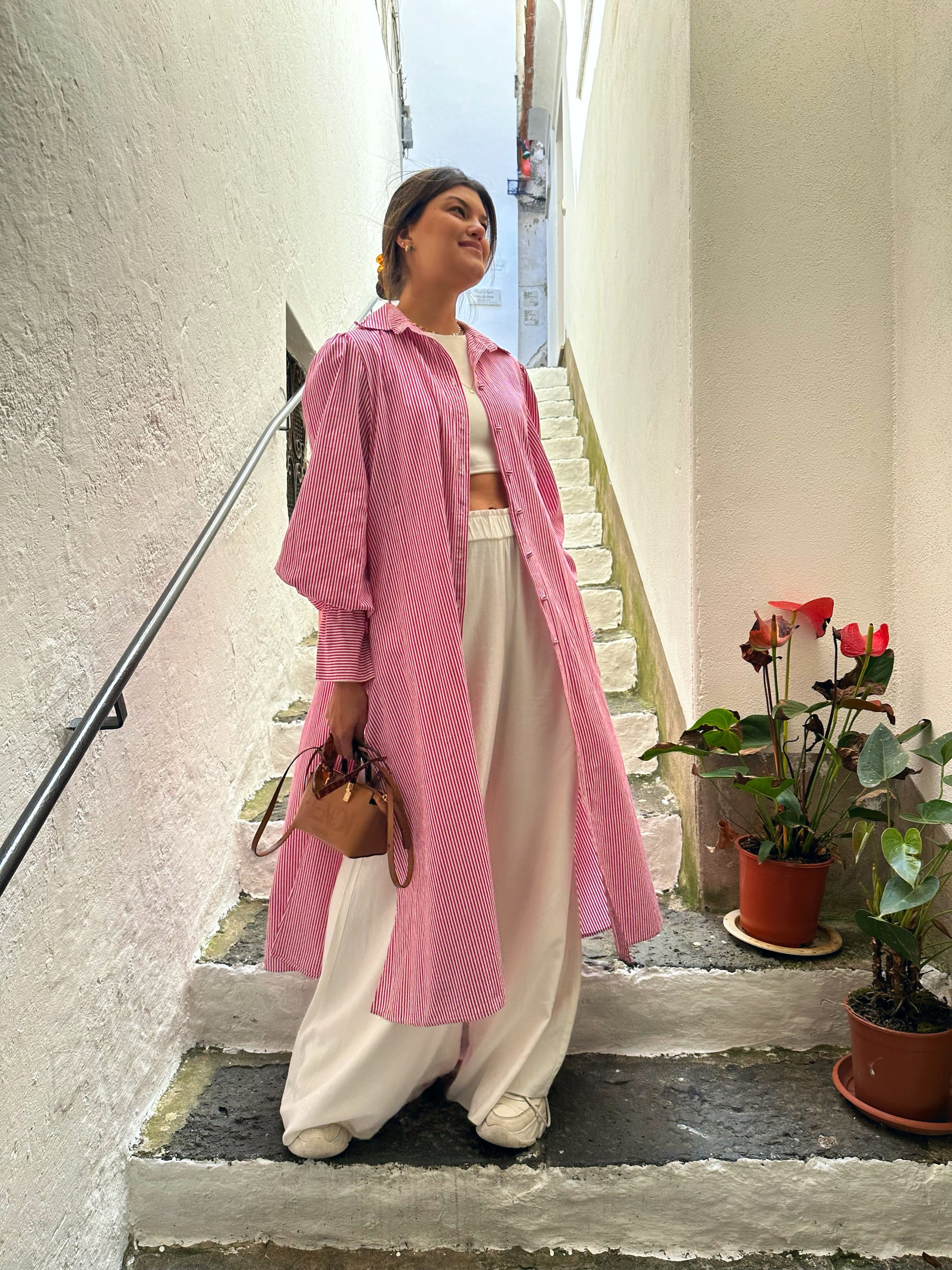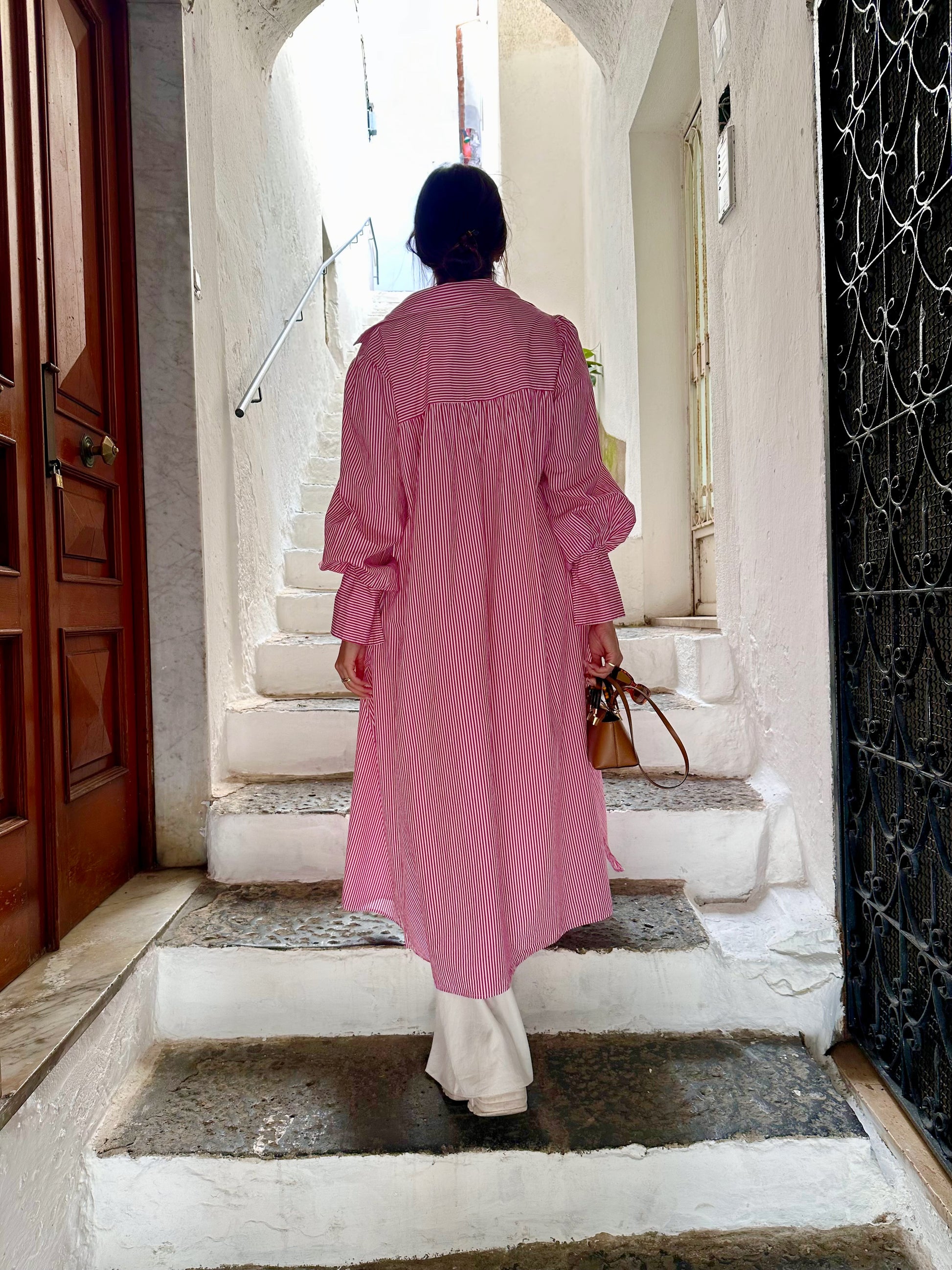 ♥ Com listras finas, botões forrados e mangas bufantes, a Chemise Farah traz uma elegância sutil inspirada na harmonia entre tradição e modernidade. O caimento fluido é valorizado pelas aberturas laterais, que proporcionam leveza e movimento, criando uma peça prática e cheia de autenticidade.